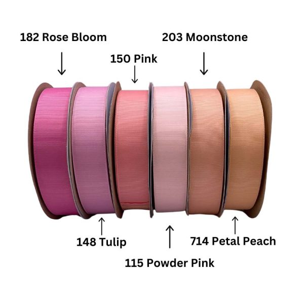 For designs that need more structure and texture, our grosgrain ribbons are an excellent choice. Known for their distinctive ribbed surface, grosgrain ribbons hold their shape beautifully and add visual interest to both floral and gift designs.